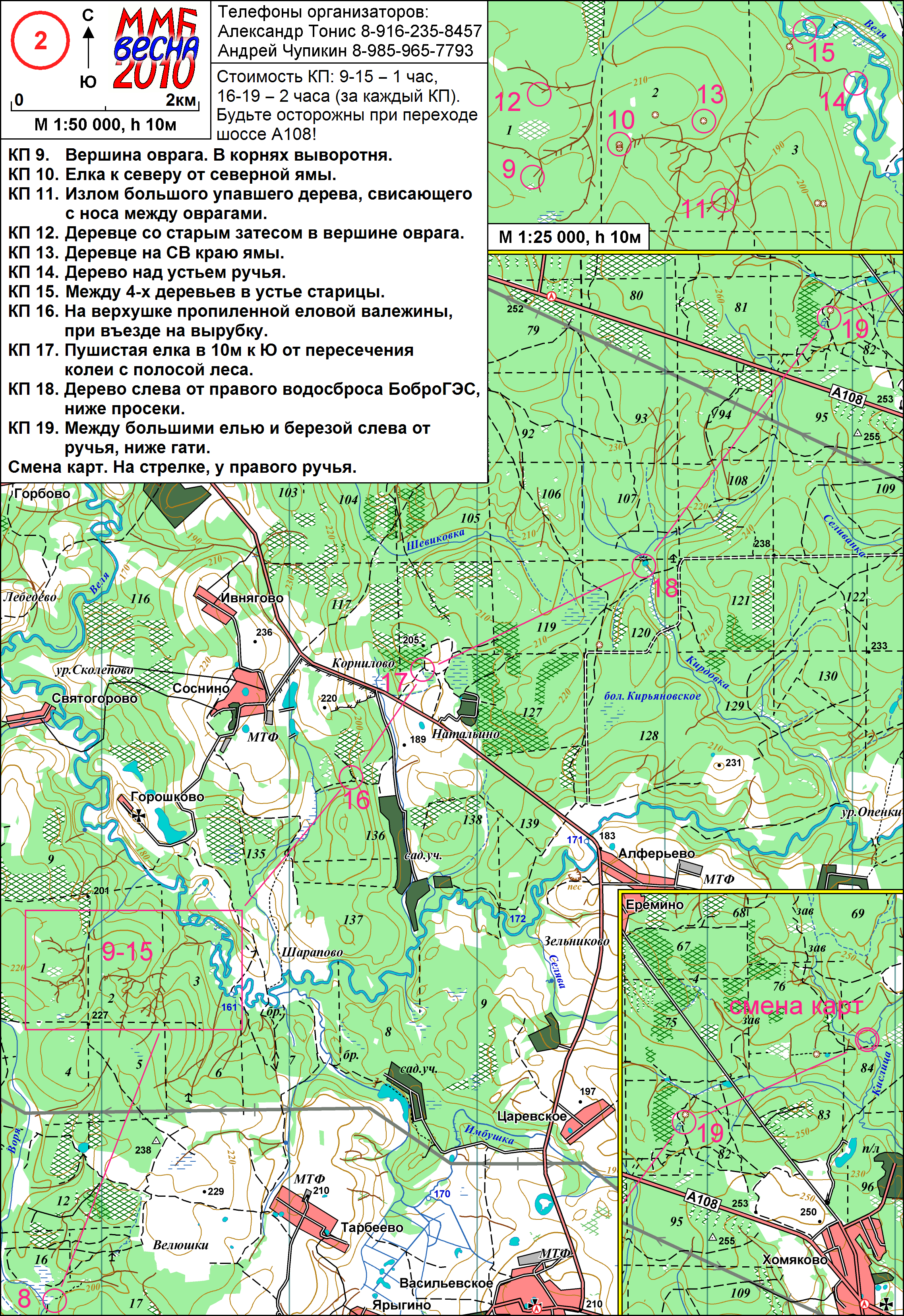 | Абрамцево - Вербилки Первый этап: 63 км (32 КП) Второй этап: 30 км (16 КП). Штраф за невзятие КП Карты дистанции: обновление: '2010-11-05T00:46:00.249017' | |||||||||||