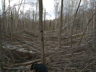 Особенности района. Лесные массивы – Тульские засеки: лиственные леса (дуб, липа, берёза) с отдельными вкрапленями хвойных насаждений, с подлеском и без него. Есть заваленные участки – последствия урагана, но их немного. Большие и малые поля, как обрабатываемые, так и зарастающие лиственным лесом и сосной. Разветвлённая овражно-балочная сеть и приуроченные к оврагам небольшие вытянутые леса – колки. Ручьи и речки запружены бобрами, глубоких бродов обычно не требуется – переправы по брёвнам и бобровым плотинам. Сплошных вырубок в лесах почти нет, но есть много выборочных рубок, к которым подходят грязные лесовозные дороги. Заметна активность охотхозяйств: охотничьи вышки с прикормочными площадками и сеть дорог к ним. Сейчас большинство лесных дорог грязные, напрямик по лесу идти приятнее.