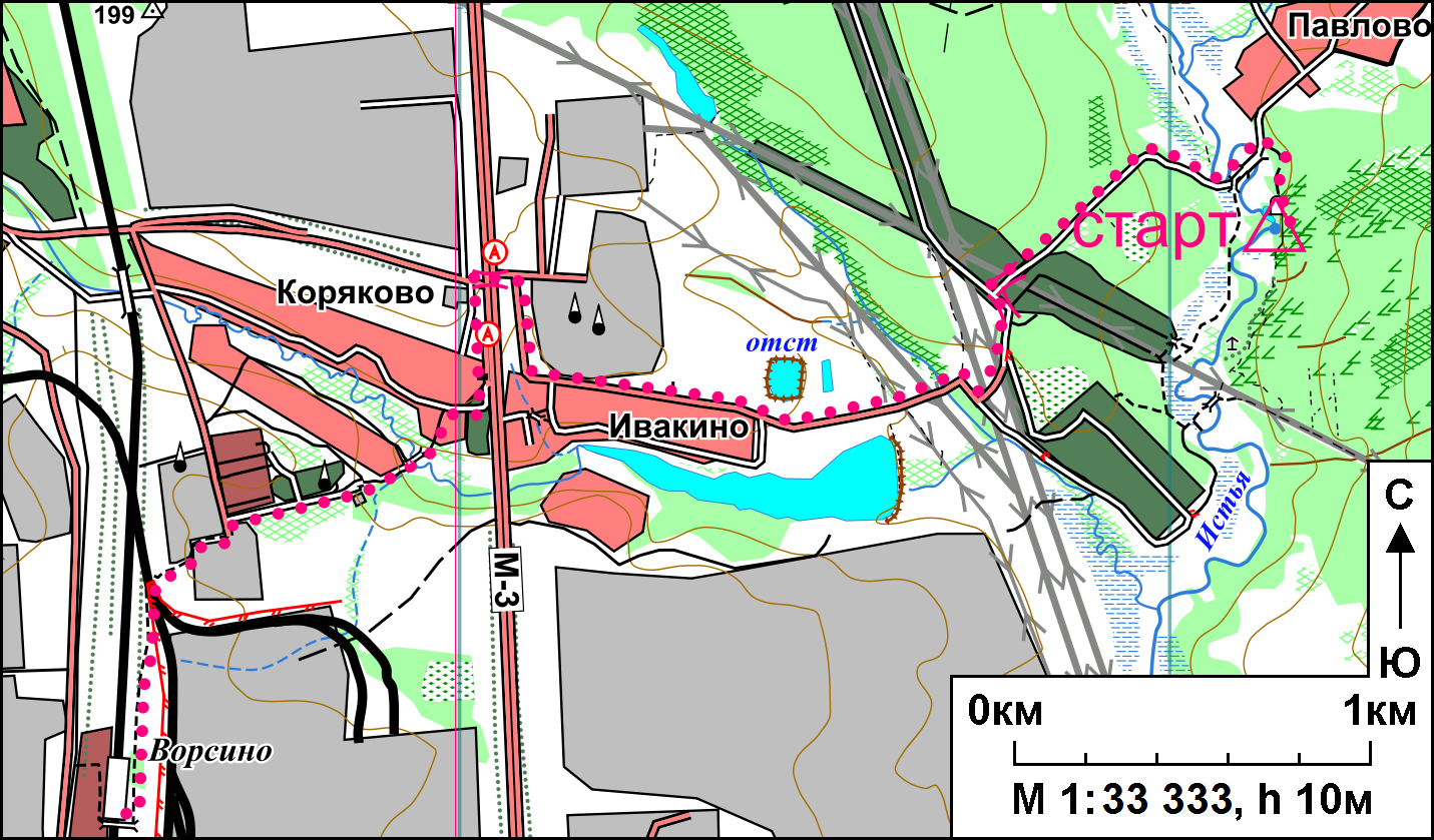 Старт ММБ-2025-весна состоится вечером в пятницу 16 мая в 6 км от ст. Ворсино Киевского направления. Если ехать из Москвы, то надо выйти из головного вагона, перейти по мосту на восточную сторону, далее по схеме. Автомагистраль М-3 переходить только по оборудованному переходу, не срезать!