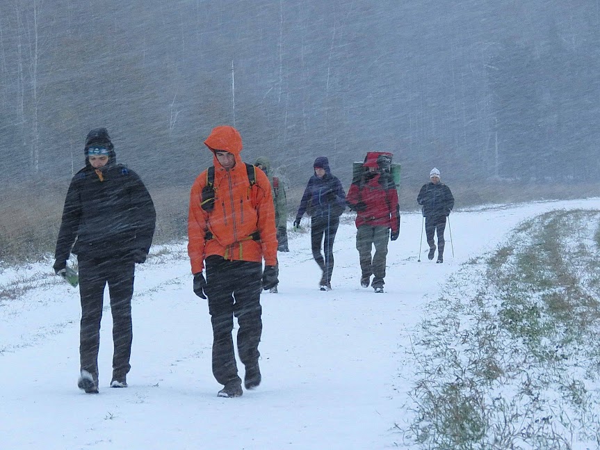 Отак идти самая красота. Идёшь на палочки опираешься, лес ломить не надо, легко и свободно. По лугам. Кстати с палками прикол был. Когда ехали туда было много челов с лыжными палками. Ну думаю хуле они выё.ся, а потом как прошёл часиков семь, понял, что-то в этом есть… И на след день бодренько так с двумя палочками. ДАже пацик с которым ехали в электричке отметил, что мол быстро вы научились. Дык ага, осваиваешься здесь просто бегом!